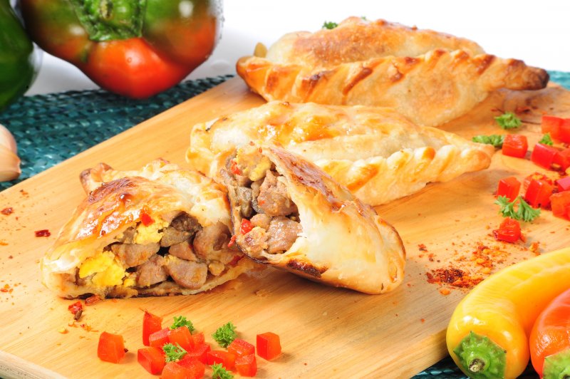 Carne picada (cuadrada) 800 gr , Cebolla 1, Cebolla de verdeo 500 gr., Aceitunas negras descarozadas 150 gr., Huevos 2 , Ají molido c/n, Comino c/n, Pimentón dulce c/n, Sal y pimienta. Masa: Harina 000 500 gr., Agua 225 cm3, Primer jugo porcino 50 gr., Sal 10 gr. Pimentón dulce 1 cdita.